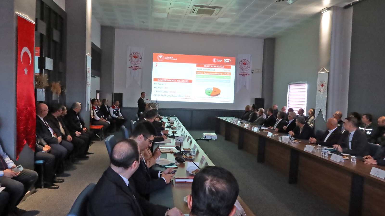 İl Müdürümüz İslam Köse ve DSİ İşletme Bakım Daire Başkanı Cengiz Köse tarafından mevcut durum, su kaynaklarının kullanımı ve yürütülen çalışmalarla ilgili kapsamlı bir sunum gerçekleştirildi.
